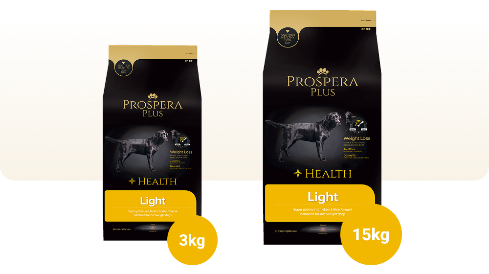 Prospera Plus Light je ideální řešení pro psy s nadváhou – kombinuje nízkou energetickou