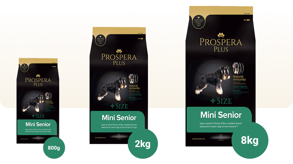 Prospera Plus Mini Senior je navrženo speciálně pro potřeby starších psů malých plemen, kteří potřebují výživu zaměřenou na udržení kondice, zdraví a vitality.