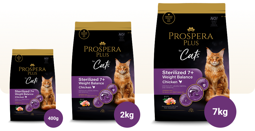 je superprémiové krmivo vytvořené speciálně pro podporu zdraví a vitality kastrovaných koček od 7 let.